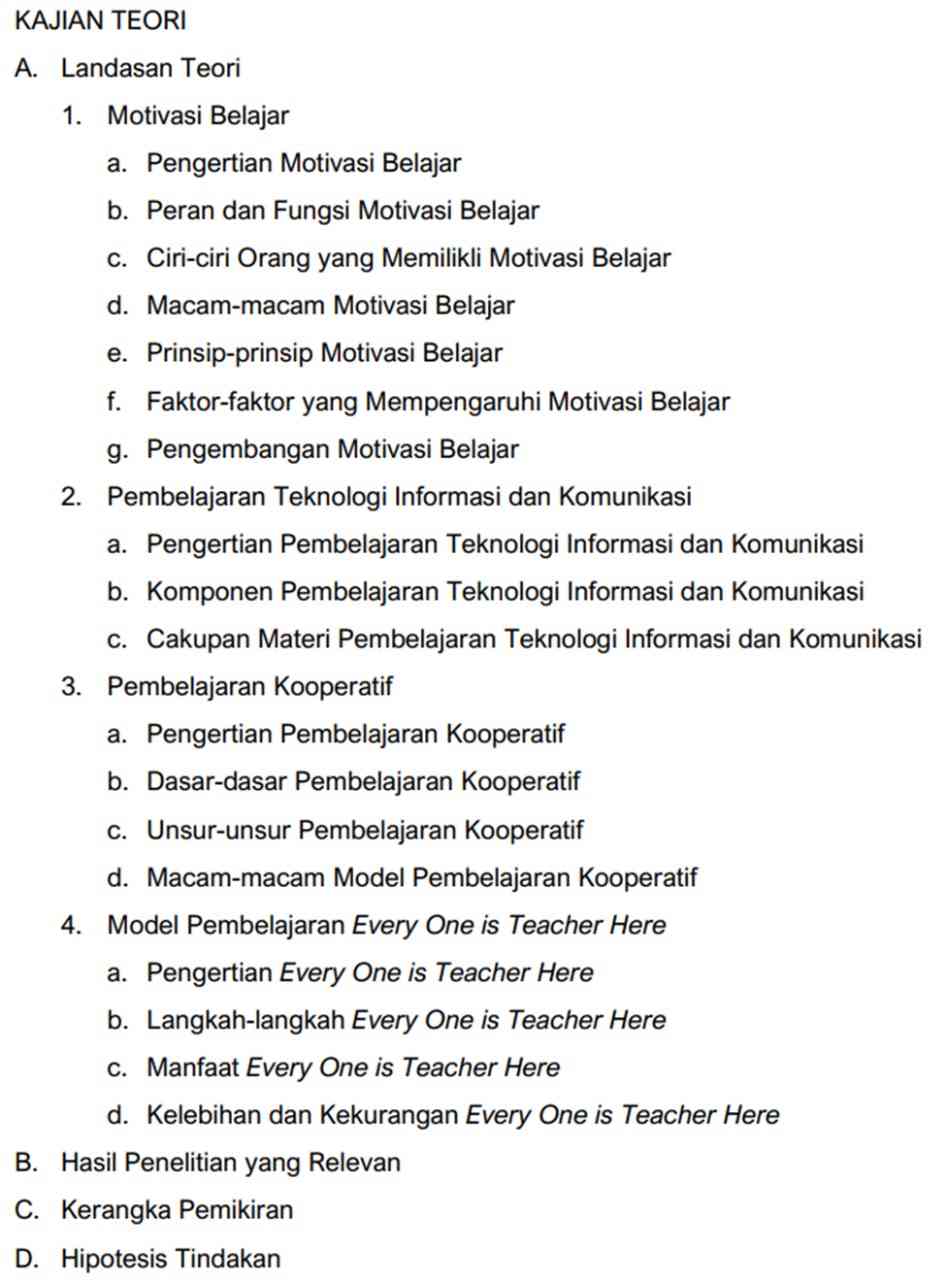 Selanjutnya memodifikasi BAB I “Pendahuluan” menjadi “Pembuka” dan beberapa Bab berikutnya menjadi beberapa subbab. Yang aslinya seperti dibawah ini